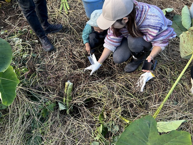 ・サトイモが堀りたてで本当に美味しい。初めての体験ができた。